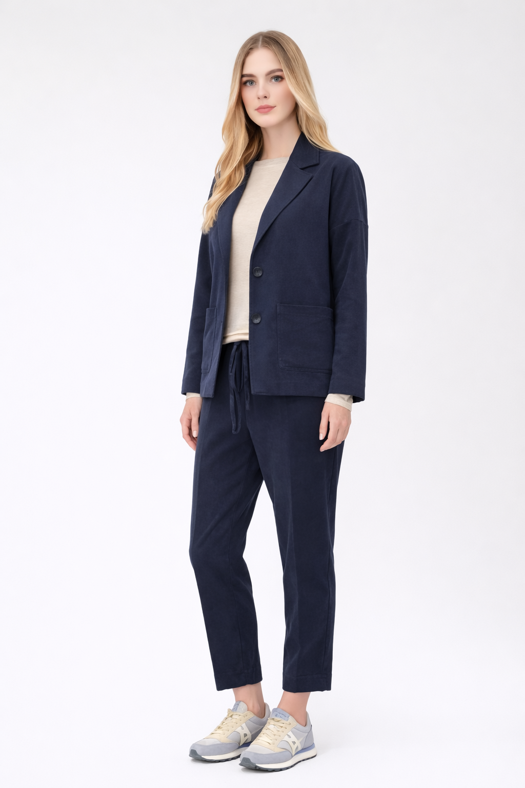 Blauer giubbino donna a linee geometriche Lungo Althea 25WBLDK03098-006047 999EI