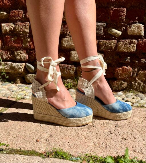 Simply refined, the wedge sandal with ankle strap and fabric workmanship. Much more versatile than you might imagine, this model goes well with both minimal and overdressed looks. The natural-toned wedge has that all-Italian touch that makes this model a definite must-have accessory.