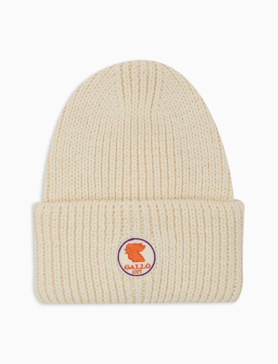 Unisex ribbed hat, made in Italy, in solid cream white tones. The Gallo logo patch gives an urban touch. Soft and enveloping, ideal for the coldest days. Gallo: synonymous with Italian quality since 1927.