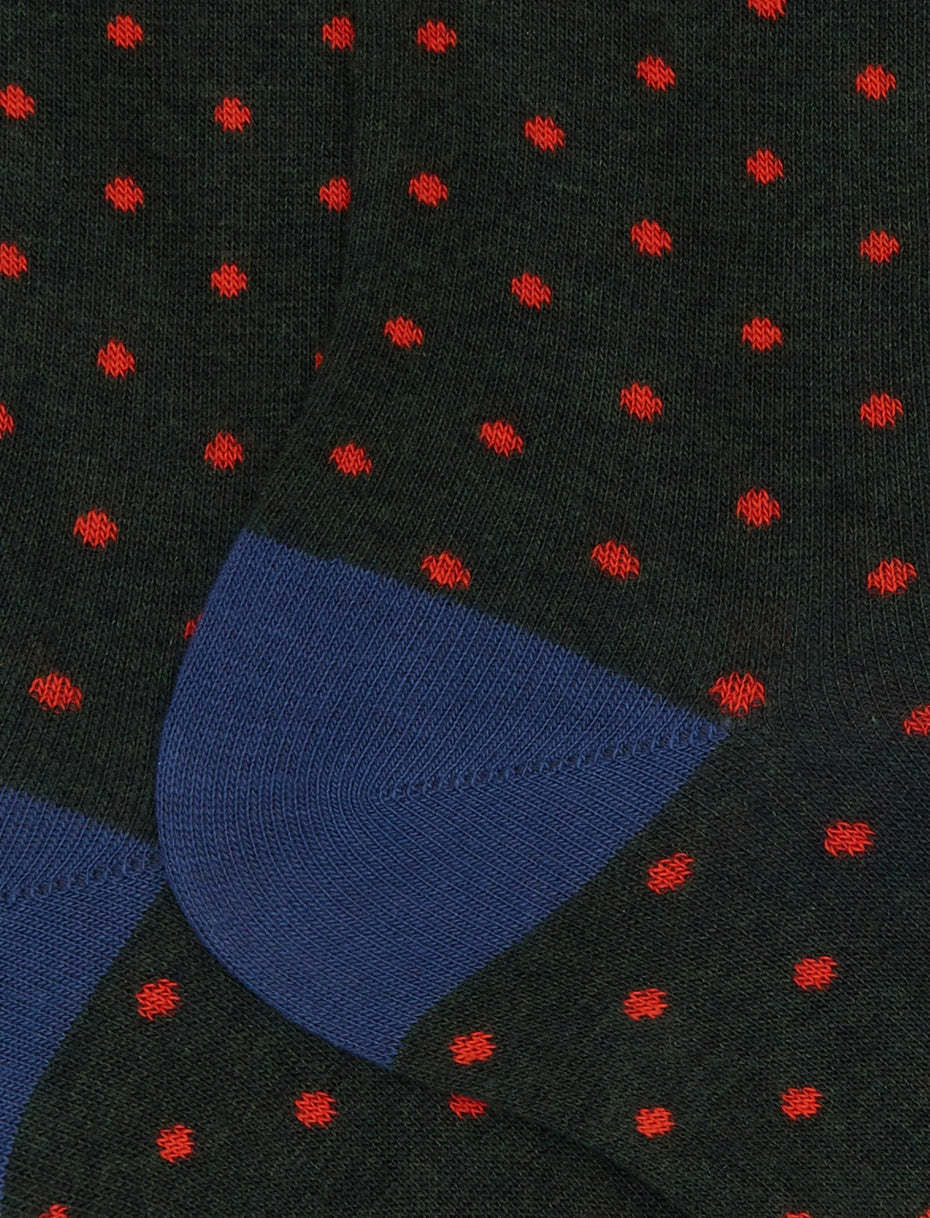 Calze corte da uomo realizzate in Italia in morbidissimo cotone. L'iconica fantasia a pois, nei toni del verde, rende queste calze immediatamente riconoscibili e perfette da abbinare ad ogni tipo di look. Il brand Gallo è in punta a contrasto. Sinonimo di qualità ed eccellenza dal 1927.