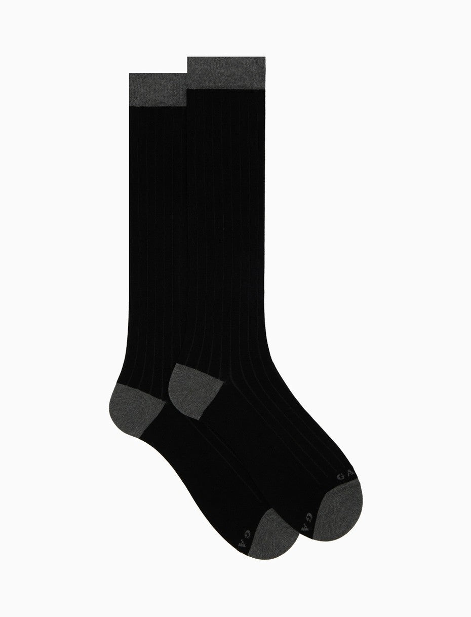 Gallo calze uomo lunghe cotone nero tinta unita con contrasti AP511053 12435