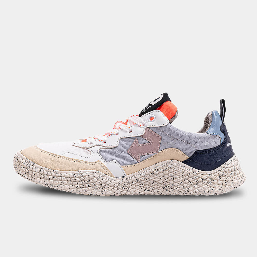 Un viaggio a Seoul in primavera: con un mix di colori pastello che incontrano i toni neutri del grigio e del lavanda, le Hana Light Mix Square raccontano la storia di un ciliegio in fiore. Il dettaglio fluo, tipico dello stile unico di ID.EIGHT, aggiunge un tocco fresco e speciale al tuo look. Hana Light Mix Square è realizzata in poliestere riciclato, Uppeal (biobased con scarti di mela) e BioVeg (biobased con mais) ed è prodotta eticamente in Portogallo. Il sottopiede antibatterico e antiodore ti offre una sensazione di freschezza e comfort duraturo, la suola offre comfort e stabilità.