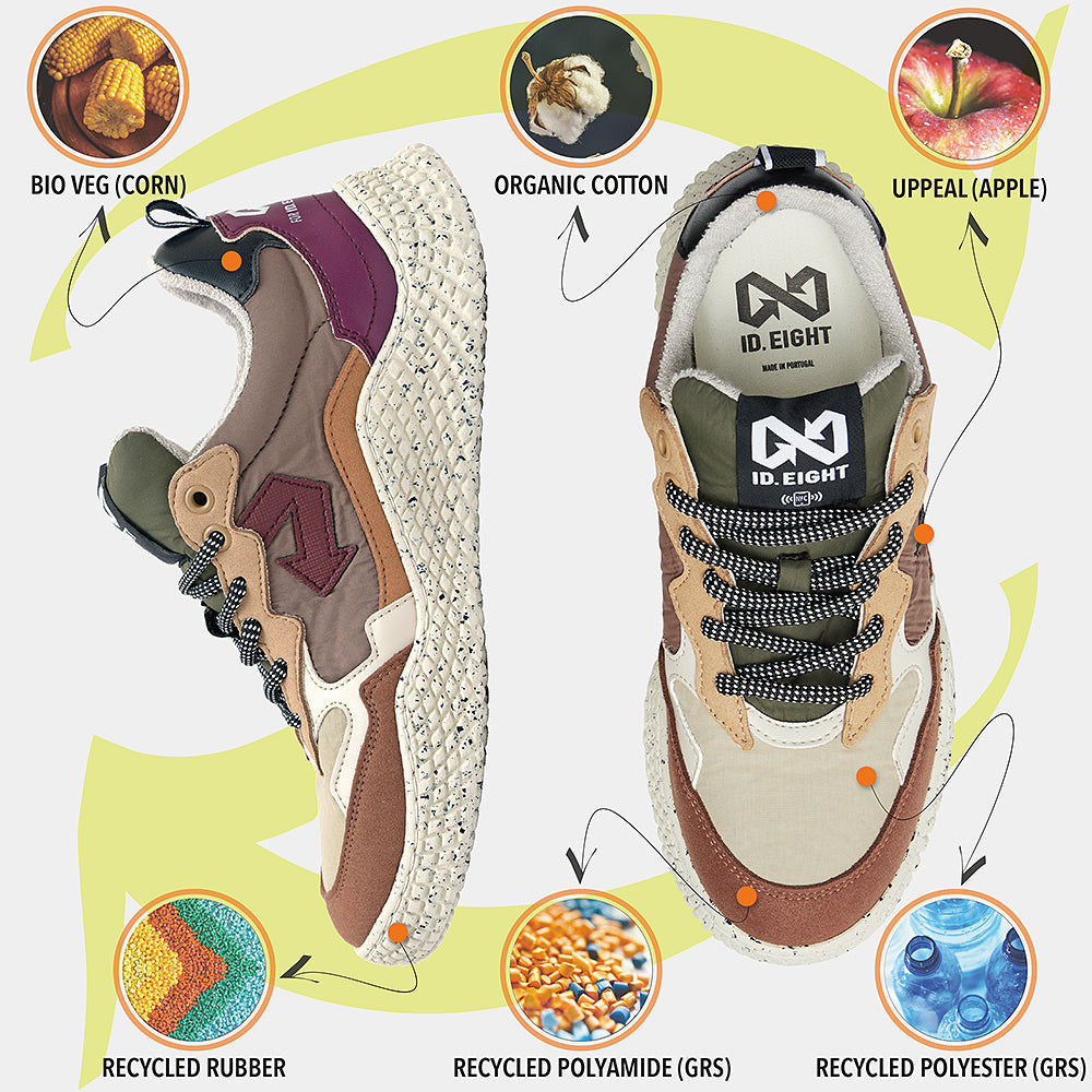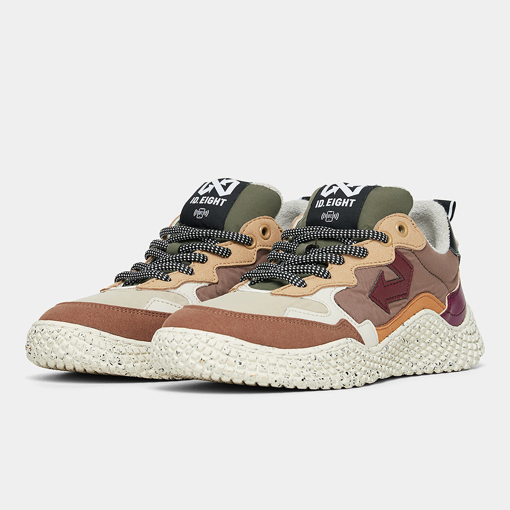 HANA SPICE RUST è un’esplosione di tonalità terrose: marroni, arancio, giallo e la freccia bordeaux a contrasto richiamano i colori speziati e intensi dell’autunno. Una sneaker dal forte impatto visivo, creata con materiali sostenibili come poliestere riciclato idrorepellente, Uppeal (mela) e BioVeg (mais). Il sottopiede antibatterico e antiodore completa il design con una dose di comfort che dura tutto il giorno.