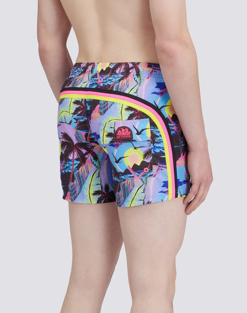 Sundek Costume uomo corto con vita elasticata Repreve con stampa HAWAIIAN POP