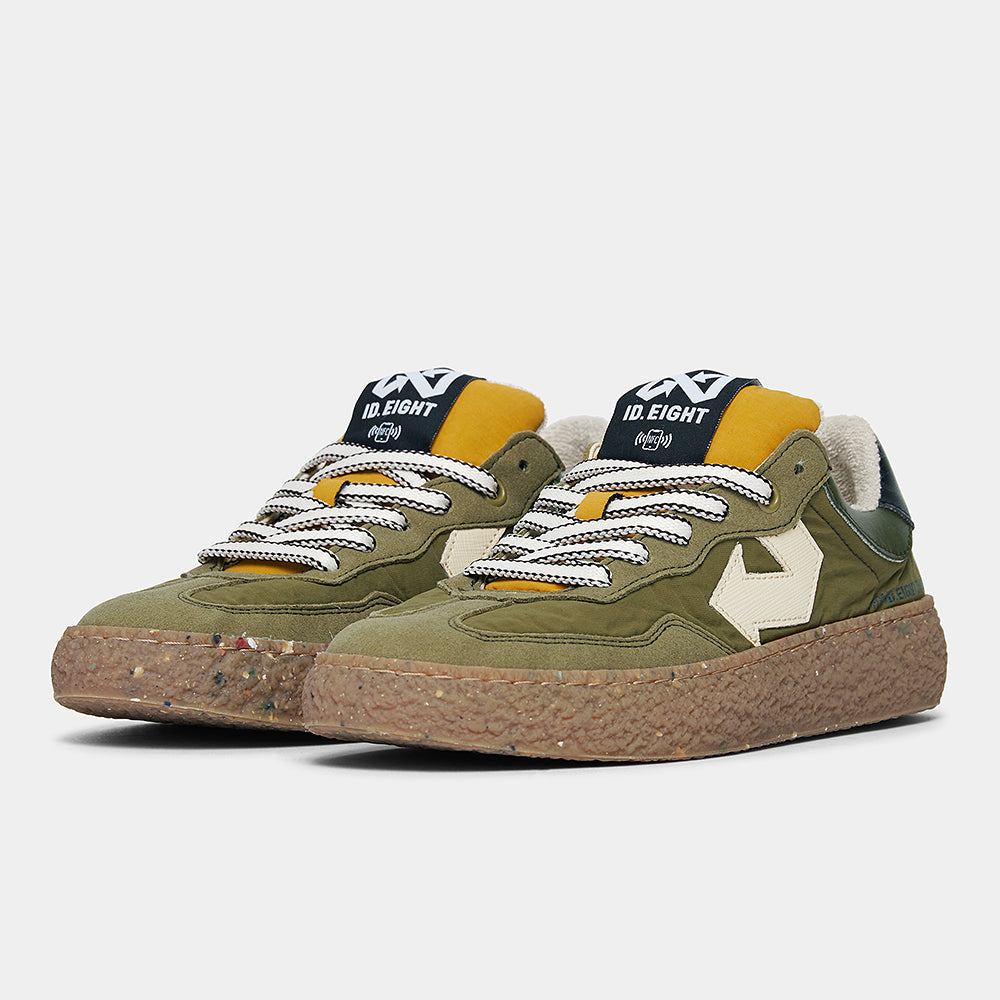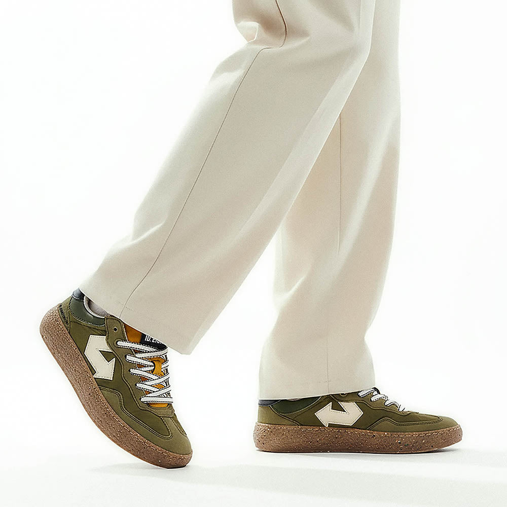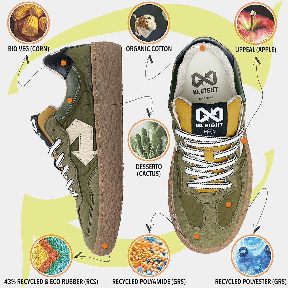 Scopri il carattere deciso di URIDURI SAGE, la sneaker che unisce toni naturali e design contemporaneo. La tomaia verde si abbina con grinta alla linguetta senape, mentre la suola marrone completa il look con un tocco caldo. Realizzata con materiali sostenibili come BioVeg (a base di mais), Uppeal (da scarti di mela) e tessuti riciclati idrorepellenti, questa scarpa è pensata per chi vuole distinguersi nel rispetto dell’ambiente. Il sottopiede antibatterico e antiodore assicura comfort e freschezza in ogni avventura quotidiana.