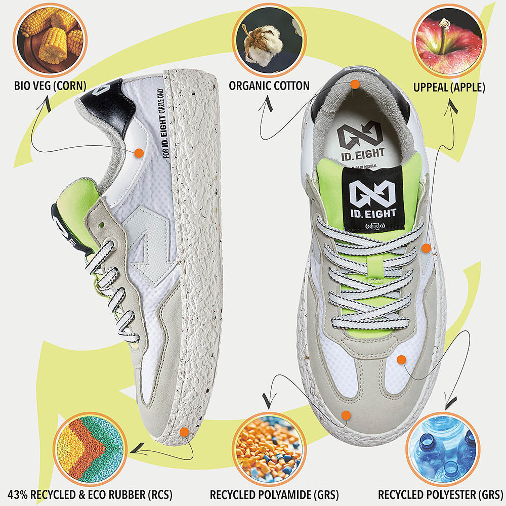 Bianca come il ghiaccio, con dettagli giallo fluo e argento, Hana White Crinkle racconta di un cocktail bevuto al tramonto – un soju ghiacciato con cedro in un locale di Gangnam, Seoul. Le Hana White Crinkle sono dotate di un sottopiede antibatterico e antiodore, che ti garantisce una sensazione di freschezza e comfort duraturo: puoi affrontare la giornata con stile, camminando con fiducia ed eleganza. Realizzata in poliestere riciclato e Uppeal (biobased con scarti di mela), Hana White Crinkle è prodotta eticamente in Portogallo.