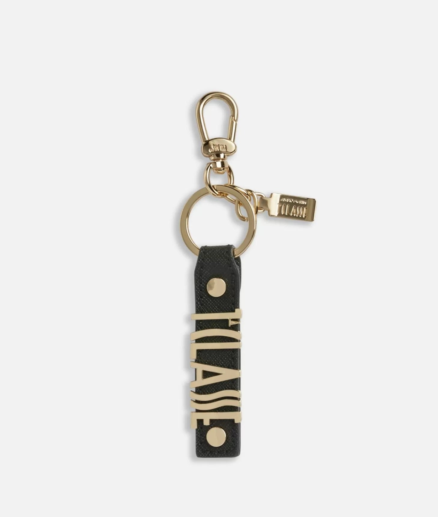 Portachiavi in saffiano sintetico con logo in lettering 1? Classe dorato. Dotato di anello e moschettone, è un accessorio perfetto per personalizzare i propri effetti personali.