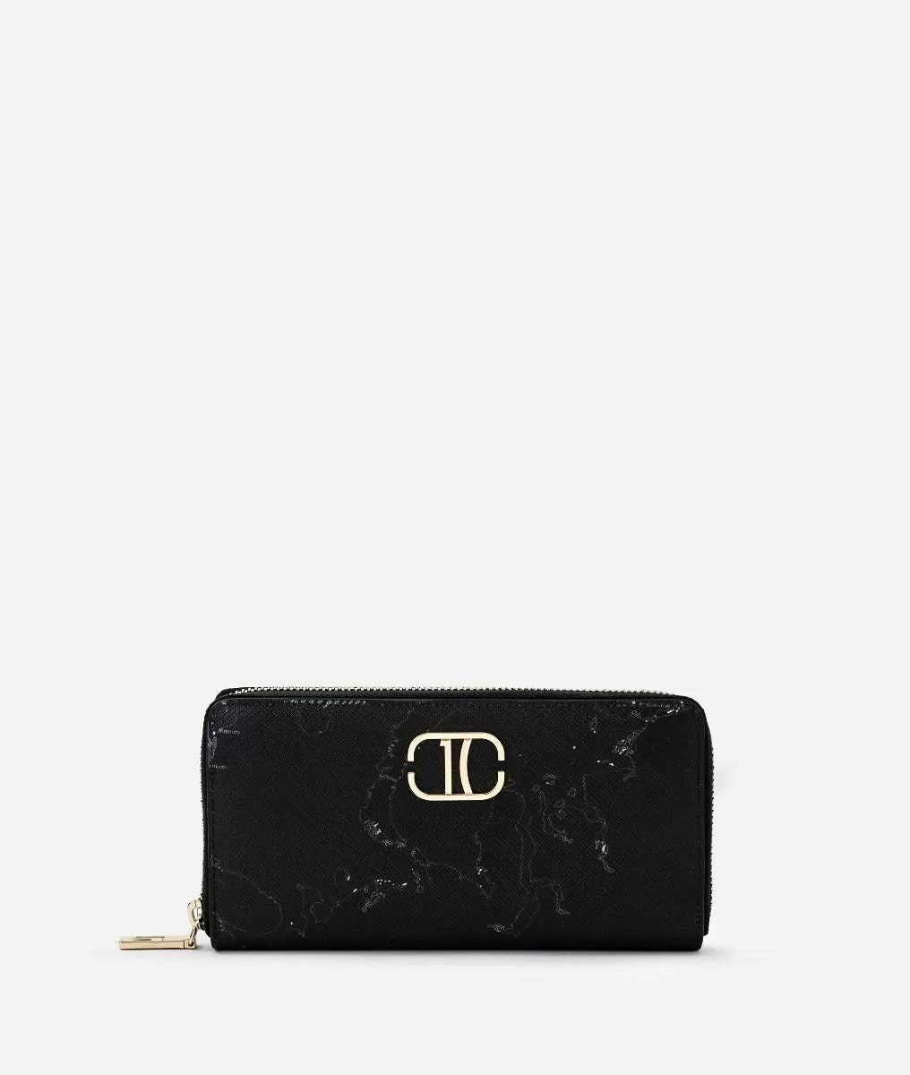 Realizzato in tessuto stampa Geo Night, il portafoglio zip around è un accessorio classico e versatile, ma allo stesso tempo originale. Il logo 1C racchiuso in un ovale aperto ai lati è l'elemento distintivo di questo portafoglio che lo rende prezioso e raffinato. Con tre ampi scomparti per le banconote e numerose tasche per le carte di credito, questo modello offre una buona capacità di contenimento.
