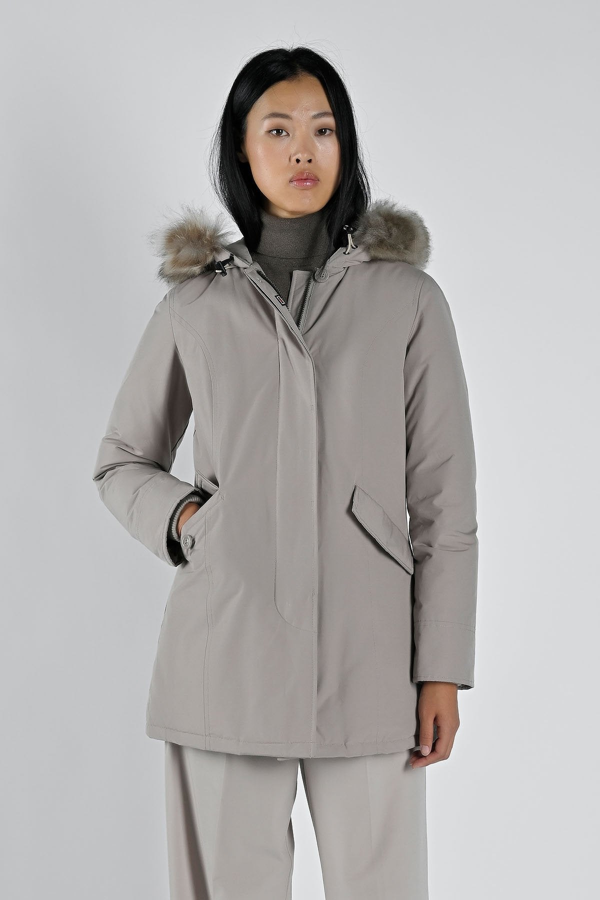 Il classico parka avvitato e femminile, semplice ma con brio, lungo ma non troppo, svolge perfettamente il proprio compito: tenerti comoda e al caldo durante i mesi invernali. Realizzato esternamente in cotone e poliestere, offre una super imbottitura a prova di freddo, una doppia ed elegante chiusura a bottoni che copre la zip, un cappuccio con profilo furry e due comode tasche esterne. Assolutamente un must have nel guardaroba invernale di ogni donna, da abbinare con tutto in libertà.