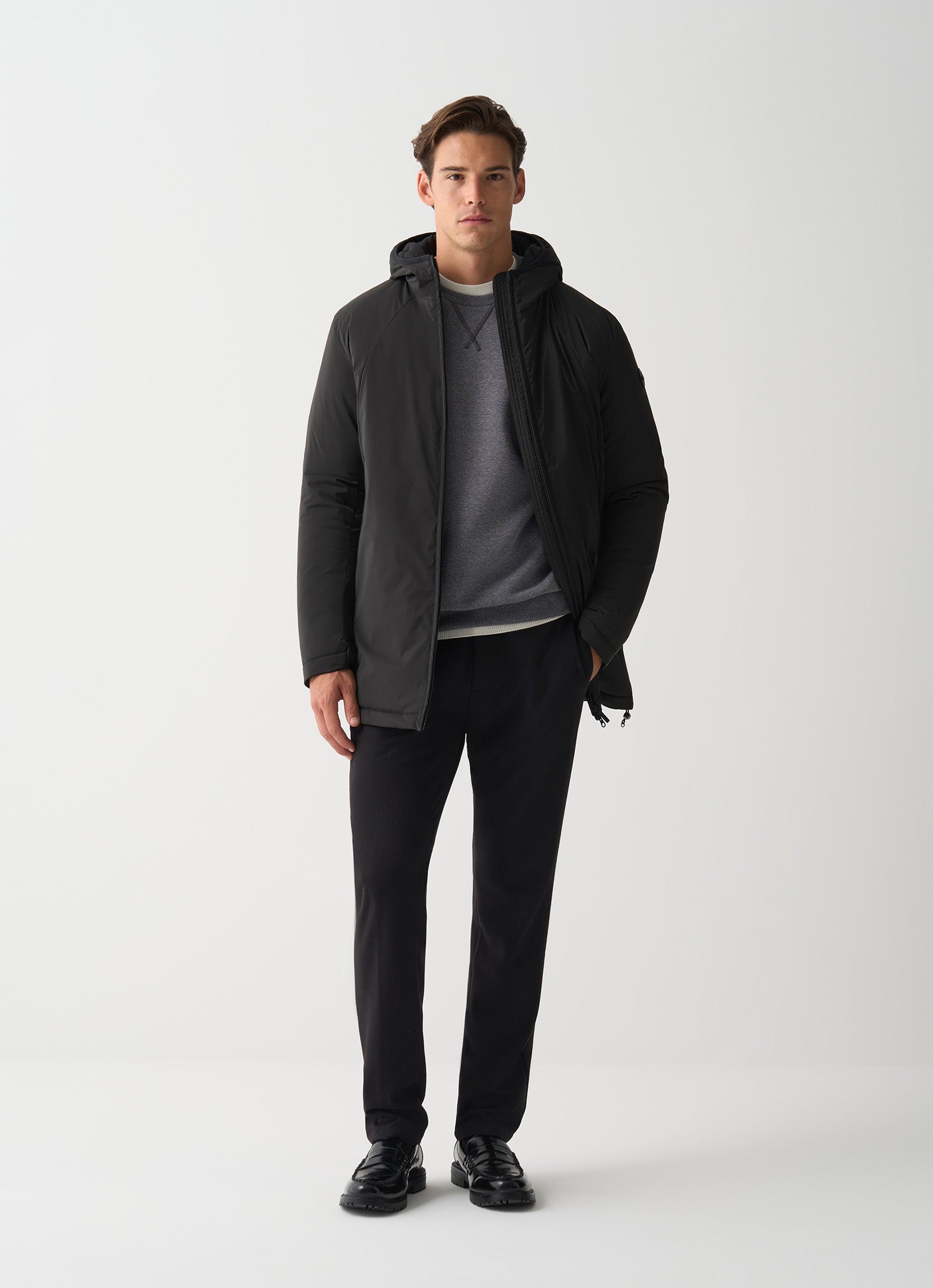 Colmar Giacca lunga uomo stretch nera autunnale con cappuccio fisso