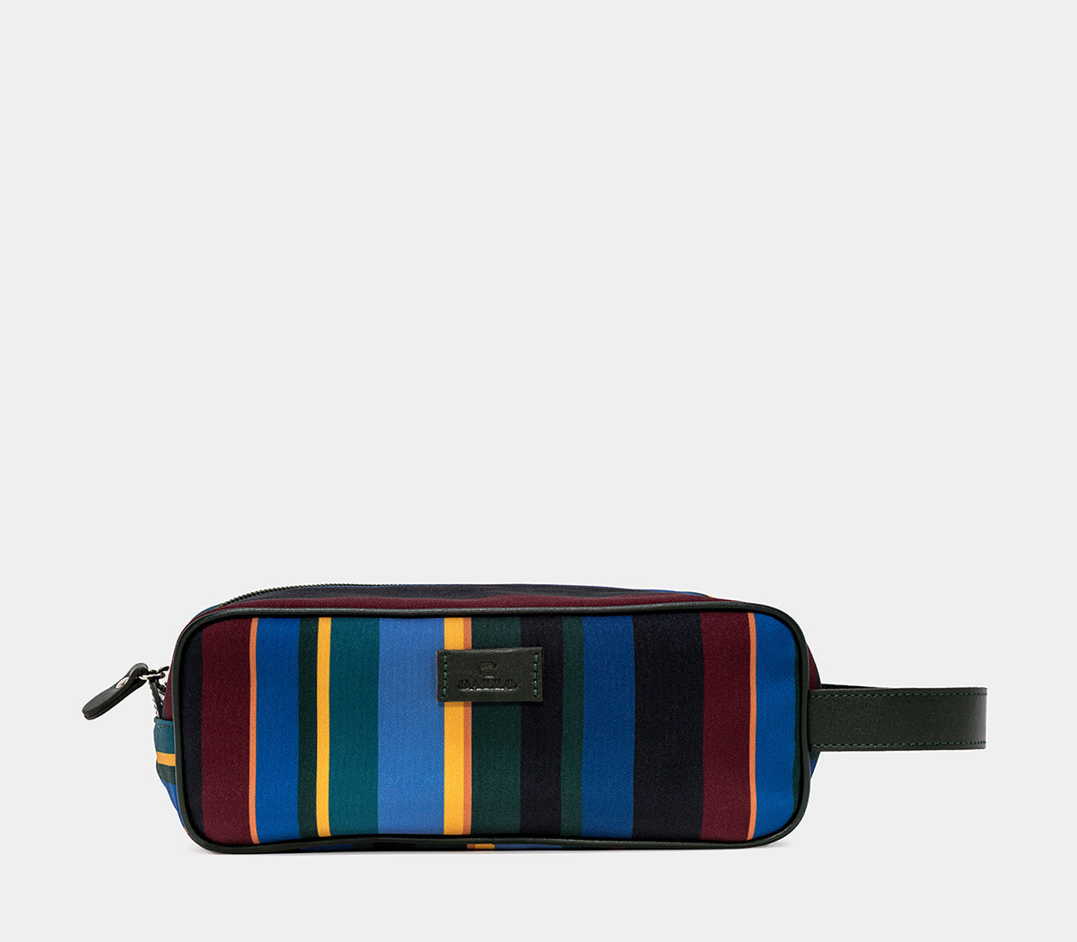 Beautycase classico fatto a mano in Italia in poliestere. Della linea Gallo Collection adatto al look di ogni giorno. Fantasia righe multicolor. Scomparto principale con zip di chiusura e tirazip in pelle tinta unita. Profili in pelle. Manico superiore e label Gallo in pelle tinta unita. Label applicato all'interno. Misure: 12 x 24 x 9 cm circa. COMPOSIZIONE: 100% POLIESTERE. Manutenzione. Non lavare ad acqua. Non lavare a secco.