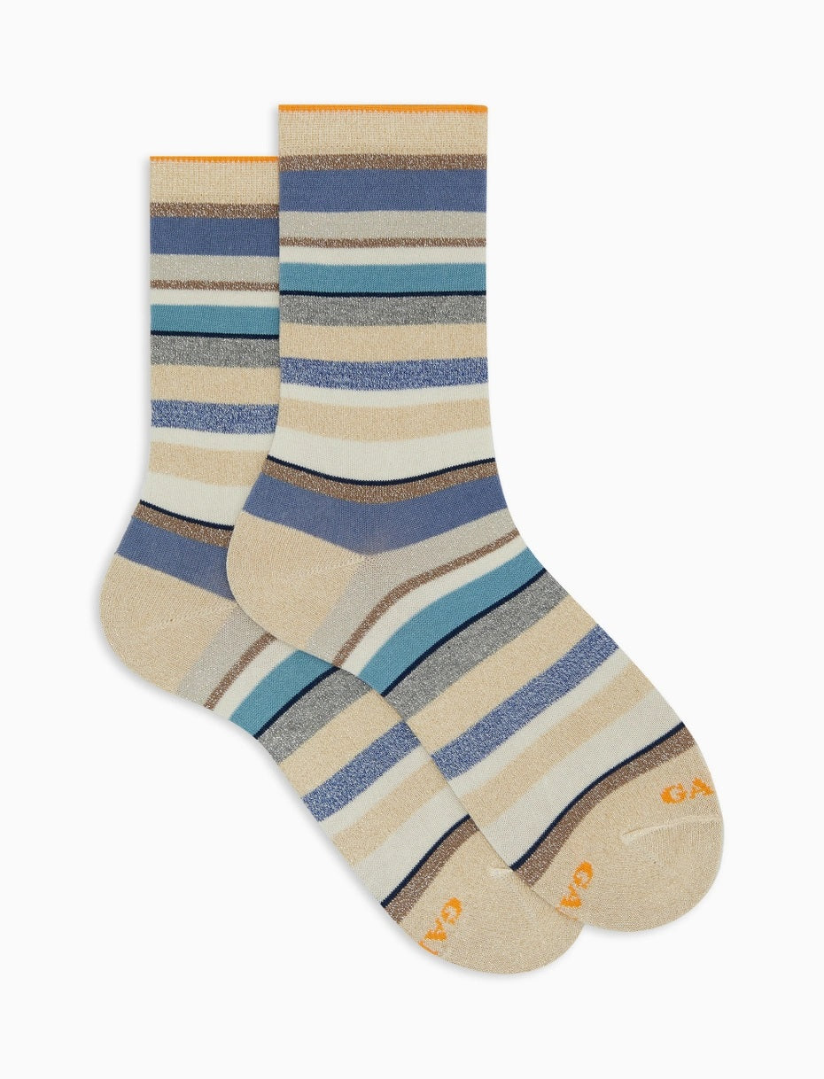 Gallo Calze donna corte cotone righe multicolor lurex beige