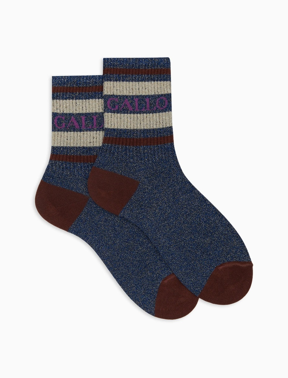 Calze corte realizzate in Italia in morbido cotone. Estremo comfort al tatto, la vibrante tonalità del blu è impreziosita da un tocco scintillante. L'iconica fantasia a righe con scritta Gallo ricamata, rende queste calze un vero accessorio di stile.Gallo: sinonimo di qualità ed eccellenza italiana dal 1927.