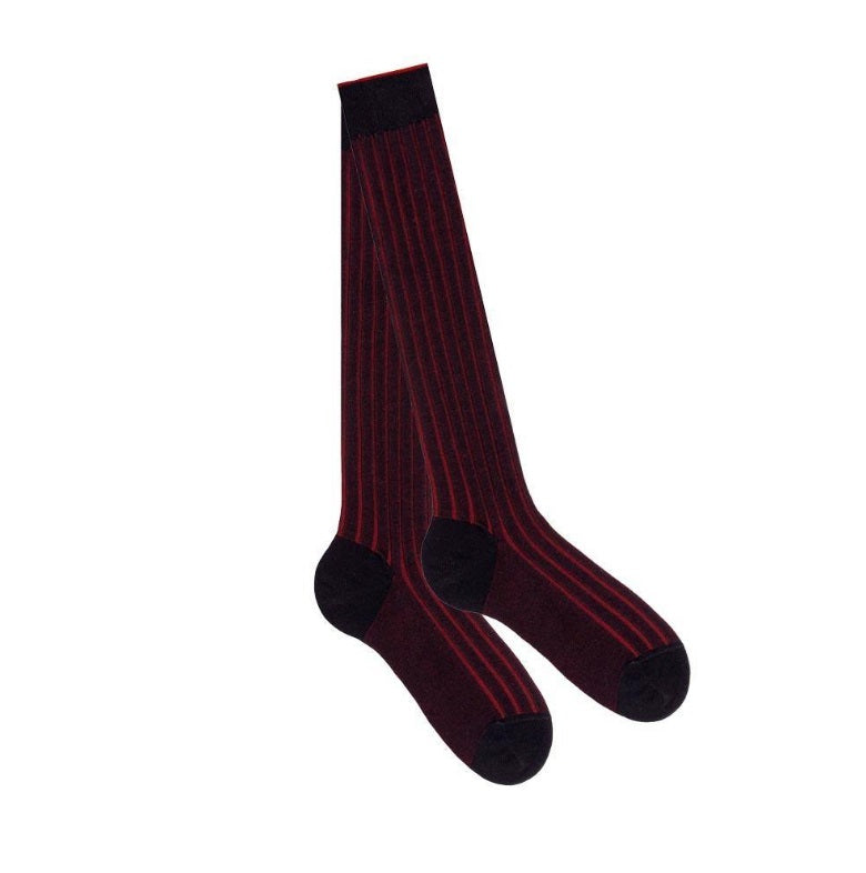 Calza lunga uomo fatta a mano in Italia in cotone pesante a coste.