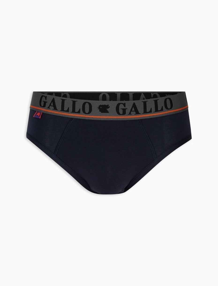 Slip da uomo realizzato in morbido cotone elasticizzato tinta unita blu. L'elastico in vita, brandizzato Gallo, garantisce un comfort estremo. Vestibilità perfetta Gallo, dal 1927 sinonimo di qualità ed eccellenza italiana. Da indossare tutti i giorni con ogni tipo di abbigliamento, sportiva o casual.