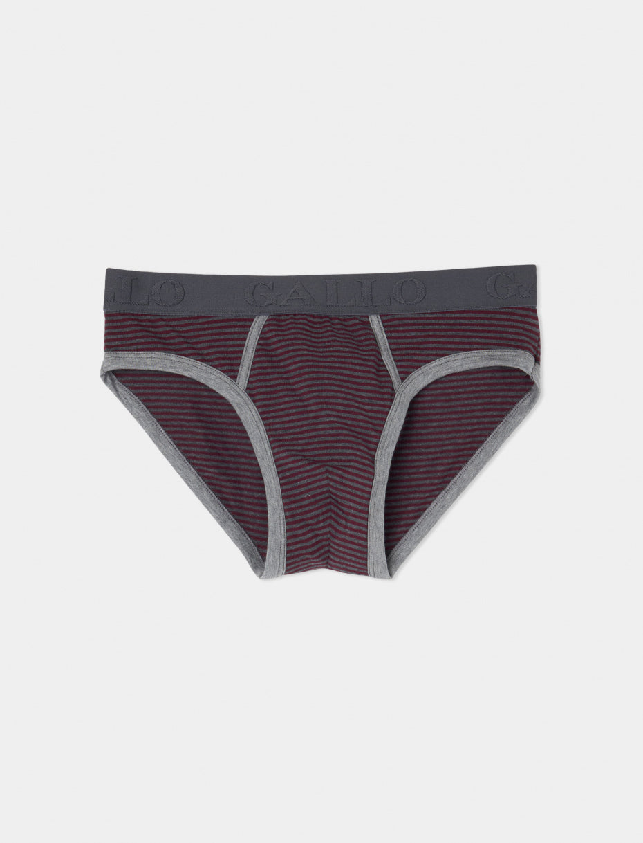 Slip classico da uomo realizzato in Italia in morbido cotone elasticizzato. L'elastico in vita brandizzato Gallo, garantisce il massimo comfort. L'iconica fantasia a righe multicolor nei toni del grigio antracite tiene fede alla tradizione Gallo, sinonimo di qualità ed eccellenza italiana dal 1927.