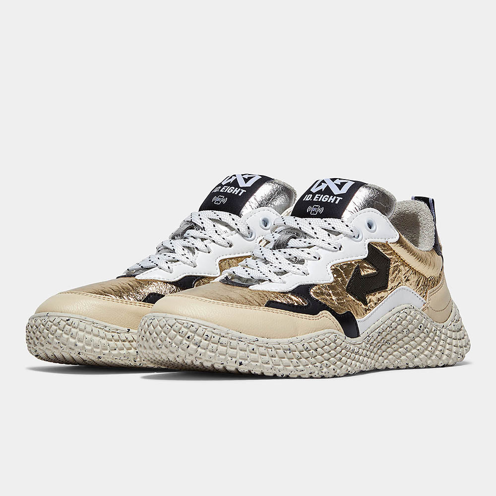 HANA GOLD è la sneaker che unisce il glamour del finish laminato ad un design moderno e grintoso. I dettagli a contrasto in Uppeal la rendendono perfetta un look che non passa inosservato! Con sottopiede antibatterico e antiodore, ogni passo è all’insegna del comfort e della freschezza, senza mai rinunciare allo stile.