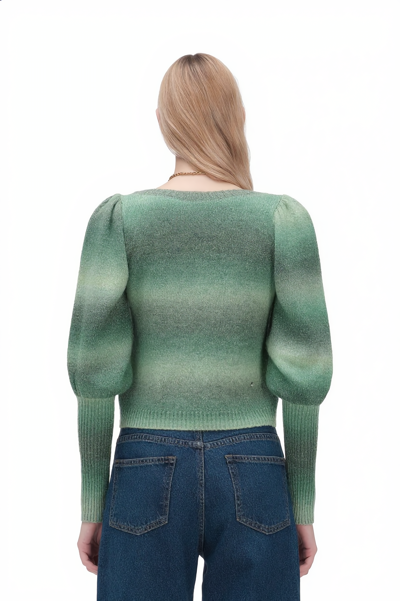 Scopri la maglia donna White Wise con effetto degradé e manica a palloncino, perfetta per chi cerca un capo femminile e di tendenza. Il design moderno con maniche voluminose e l'elegante sfumatura di colore rendono questa maglia ideale per look casual-chic e occasioni informali.